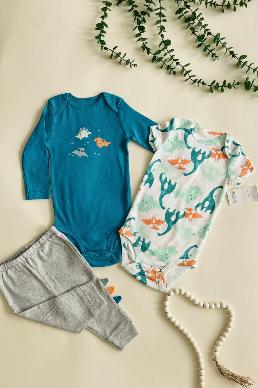 ست نوزادی ۳ تیکه دینو آبی کارترز ۲ بادی و شلوار پسرانه کپی