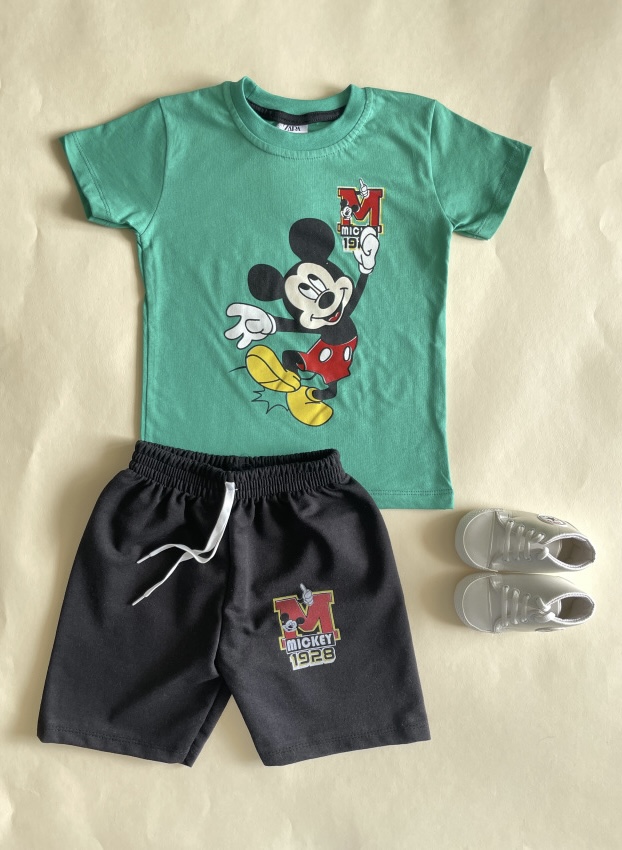 ۴-۵ سال قد از سرشانه تا انتها ۴۵ پهنا ۳۲ دور کمر ۵۶ قد شلوارک ۳۳